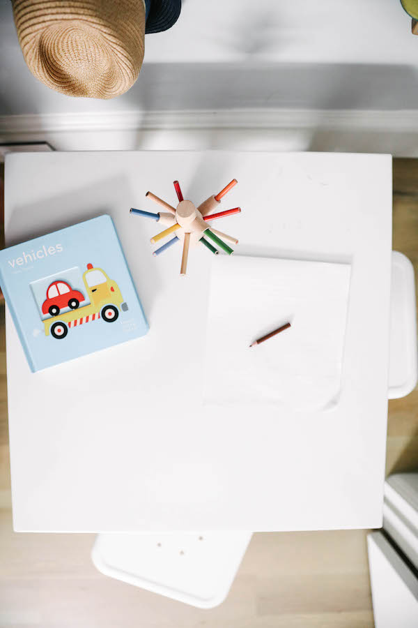 This little kid table is the perfect workstation for anything creative. I love that the stools can tuck in out of the way. And it’s actually pretty comfortable for me to sit at too.