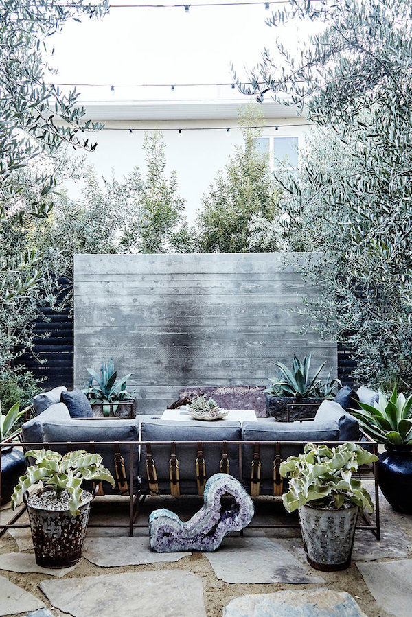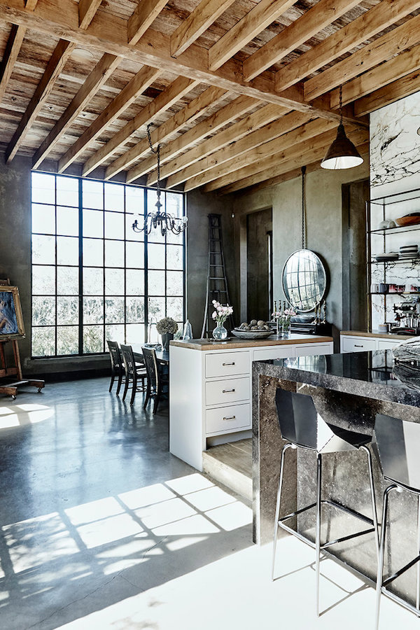 The single story home is tucked somewhere in Venice Beach (and I’m kinda determined to find it, it’s that good, but I fully realize that would be creepy), but I just have to know more. The few details we do know about this home have me obsessed. It features 22ft high ceilings throughout. Twenty-two feet! Now that’s some drama. I love the raw concrete floors. Exposed beams and soaring steel windows add graphic punches to every space. While many of the materials are very raw – steel, glass, iron, marble, wood – this home still oozes lush glamour. And the owners, an actress and a commercial director, designed it themselves! (oh what I wouldn’t give for decorating without a budget).