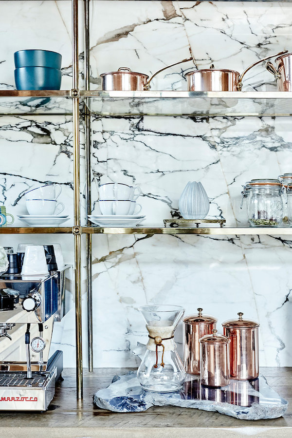 But you can’t help but want to see the house in which this stunning marble-clad kitchen resides. If that wall to wall slab running straight across the vent hood sets the tone, then the rest of the house certainly has to be equally dramatic. Turns out, it is.