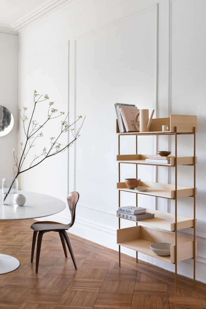I’m already trying to figure out where I can put that gorgeous Vivlio shelving system seen above into This Old Victorian. The two-toned design, featuring ash shelves and a cinnamon brown frame is so good.