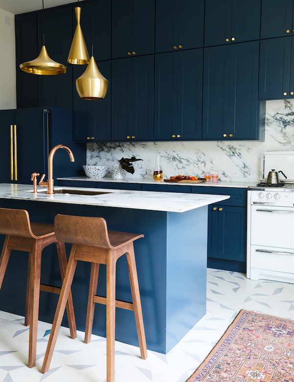 This flooring situation, where hardwoods butt up against gorgeous encaustic cement tile used throughout the kitchen is just perfect.