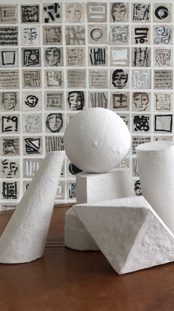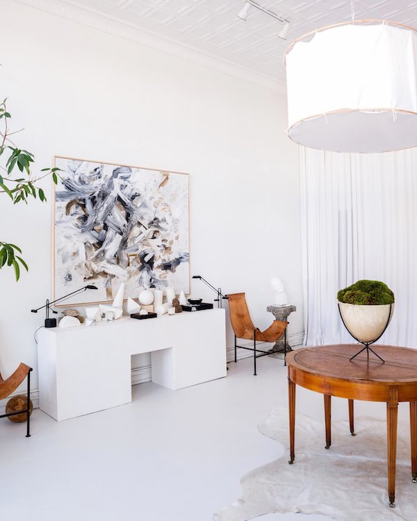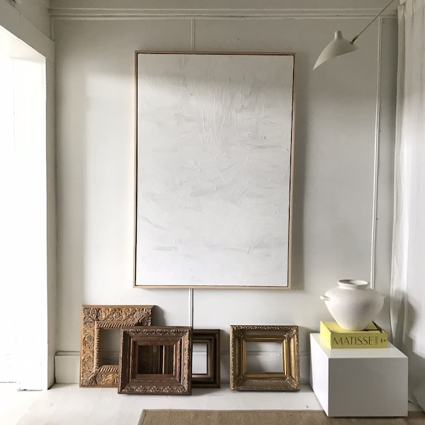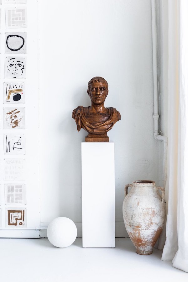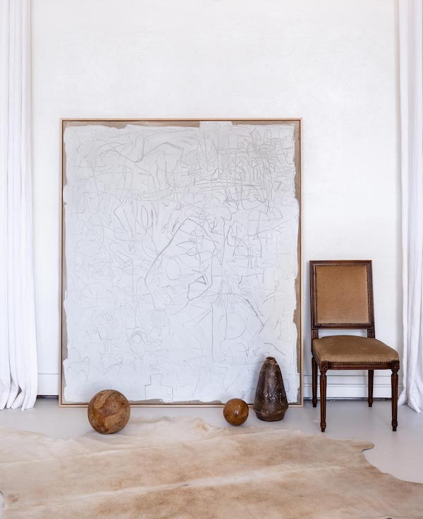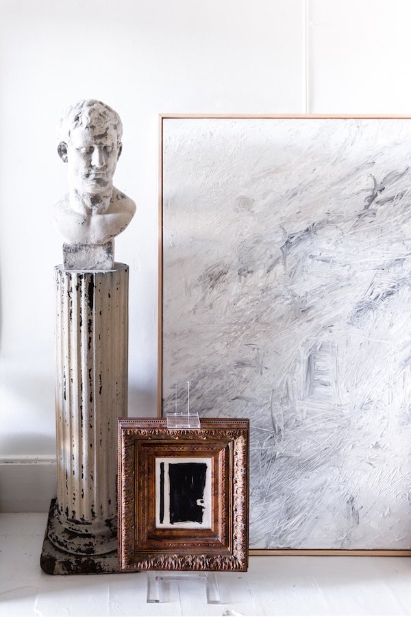 But what drew me to this work is also the space in which it resides. Dove surrounds herself with beautiful objects, classic vintage pieces, antiques found at estate sales all in a pitch perfect way that makes you almost feel you’re peeking into a sophisticated, art-filled home, not a working art studio.
