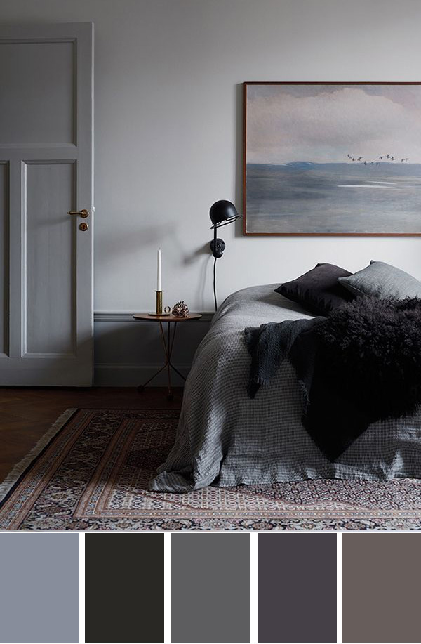 A cool mix of deep navy, grays, and just hints of warm brown feel like a cozy fall hug. I think I would crawl into that bed and not get out until next spring!