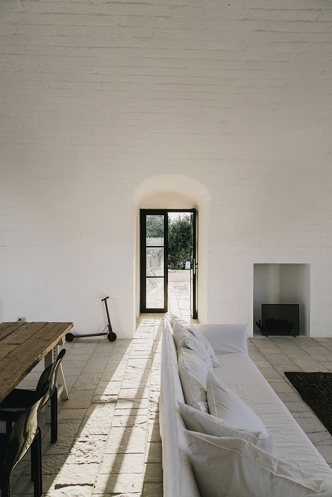 Called Masseria Moroseta, the structure of this six suite building is modeled after the traditional farmhouses that dot this region of Puglia. The space is built around a center courtyard and surrounded by terraced gardens. A pool graces one side. Local traditional materials including 1 meter thick plaster walls and limestone floors were used in construction to optimize both heating and cooling, reducing the need for air conditioning in the summer and heat in the winter. The sea of white and the variety of textures also just look absolutely stunning.