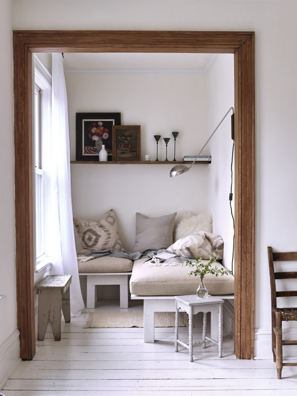 A more rustic take on the nook is similarly inviting. It’s also the perfect solution for awkward small spaces that you don’t quite know what to do with.